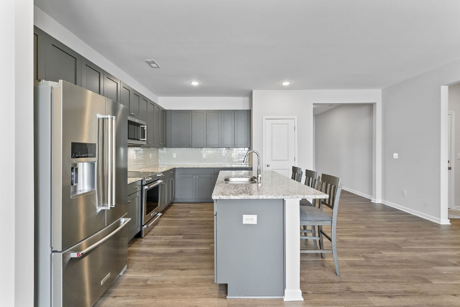 Built in 2023 and offering over 2,200 square feet on a 0.70-acre cul-de-sac lot, this modern 3-bedroom, 2.5-bath home delivers space, functionality, and contemporary finishes throughout. The open-concept floor plan features a spacious main living area that connects seamlessly to a well-appointed kitchen complete with a large center island, stainless appliances, pantry storage, and abundant cabinetry—ideal for everyday living and entertaining.